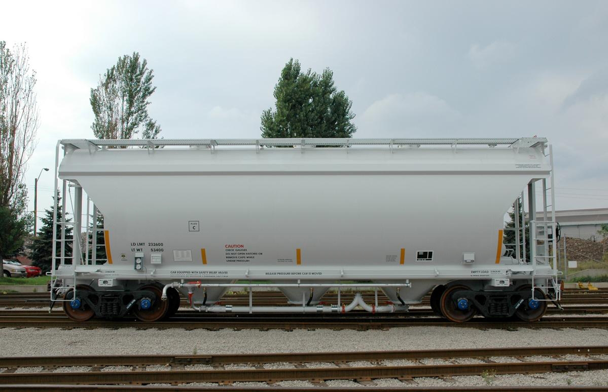 Designed for transporting cement, barite, dry chemicals, and minerals. Load through the roof hatches, pressurize the car and vacuum product out of the bottom discharge lines.